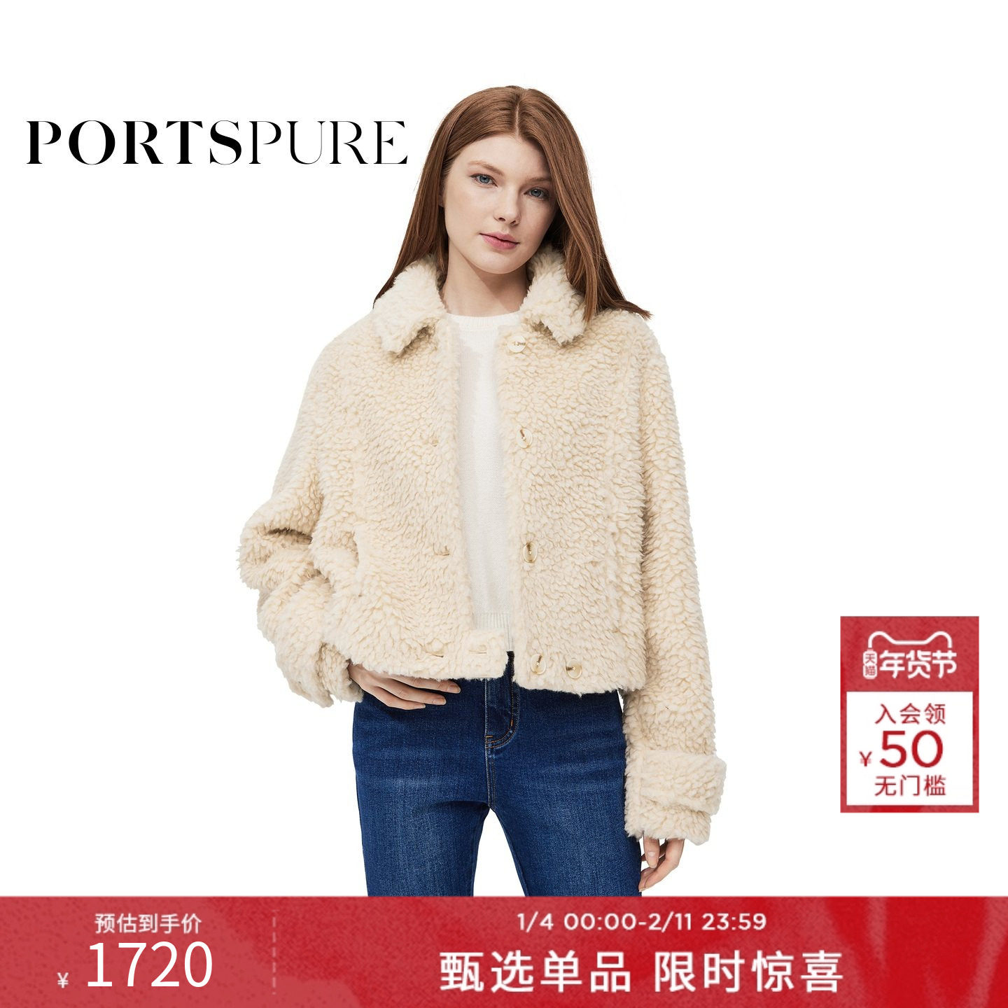 宝姿PORTSPURE女装冬季翻领温暖毛呢短外套RT9C014UWW062