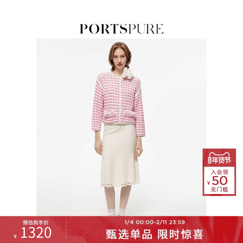 宝姿PORTSPURE女装春秋温柔小香风减龄格纹花呢正反两穿针织外套