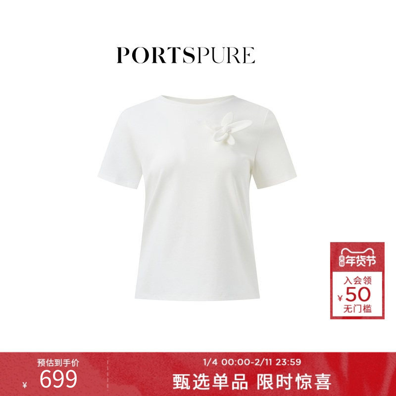 [屁酒花同款] 宝姿PORTSPURE女装舒适清新简约立体花短袖