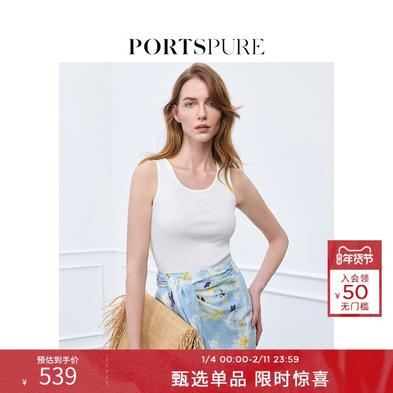 宝姿PORTSPURE女装舒适简约百搭白针织刺绣显瘦吊带背心