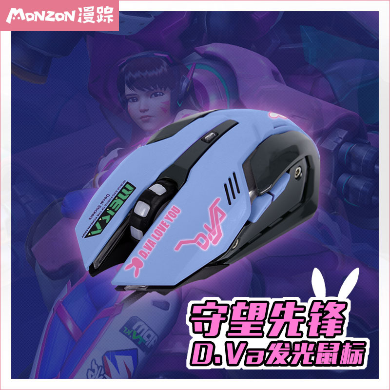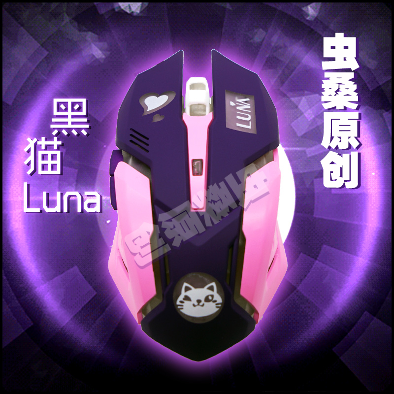 屁股先锋动漫周边有线游戏电竞鼠标dva皮肤黑猫露娜Luna粉色紫色