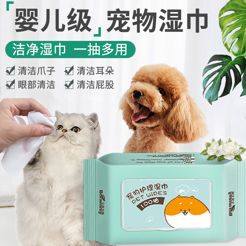 超值100抽常备宠物湿巾 狗猫通用眼部泪痕耳部屁股清洁无酒精猫咪