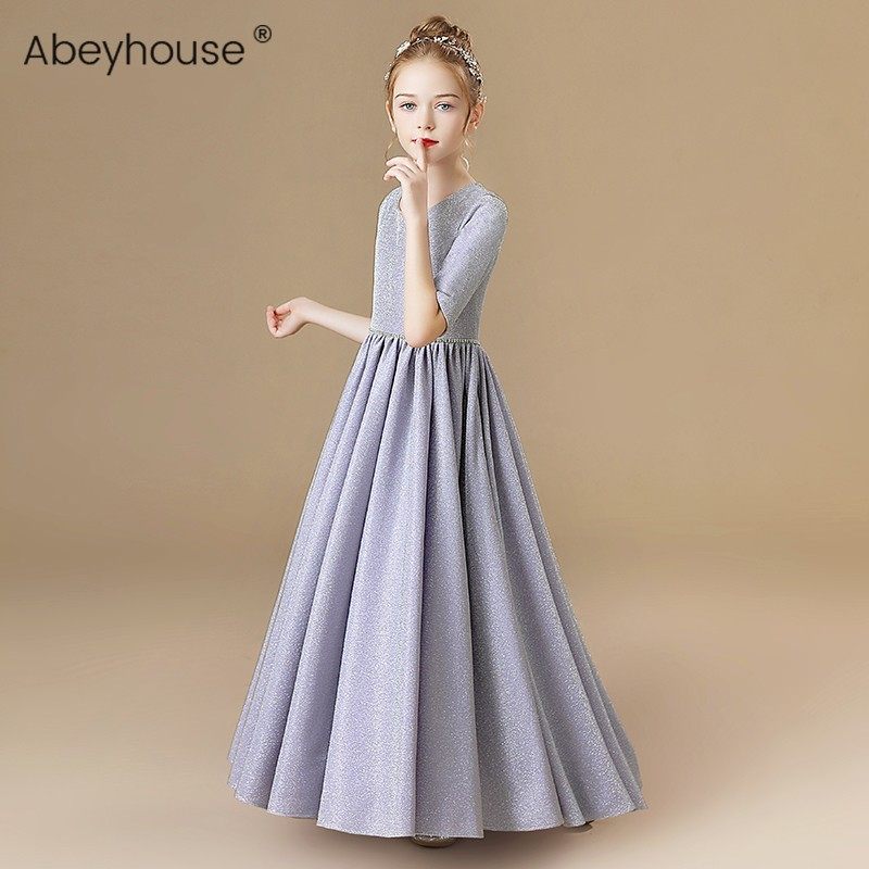 时尚长款加袖儿童晚礼服秋冬气质公主裙女童走秀演出服钢琴表演服