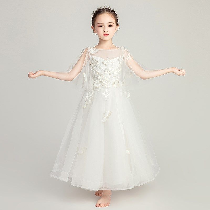 公主裙女童蓬蓬纱儿童晚礼服长款花童婚纱模特走秀宴会礼裙秋冬白