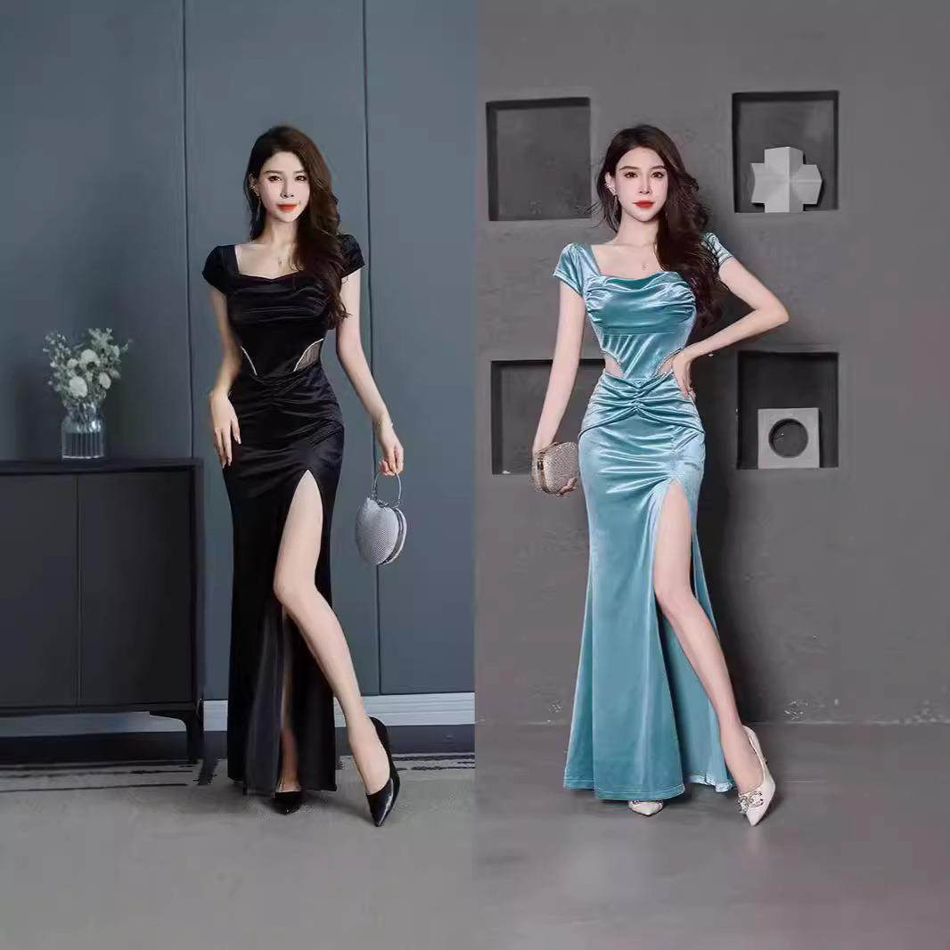 秋冬高端丝绒晚礼服2025新款名媛修身显瘦长款鱼尾连衣裙佳丽长裙