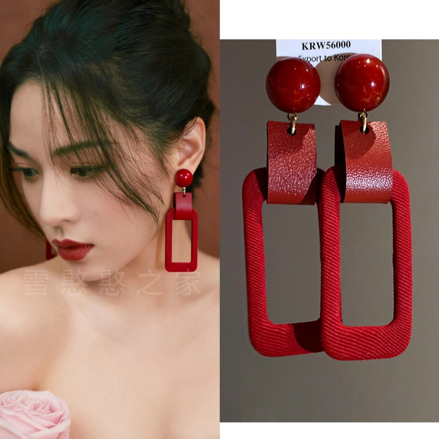 红色长款流苏耳环耳饰耳钉耳夹耳坠2025秋冬新款女晚礼服耳饰旅游