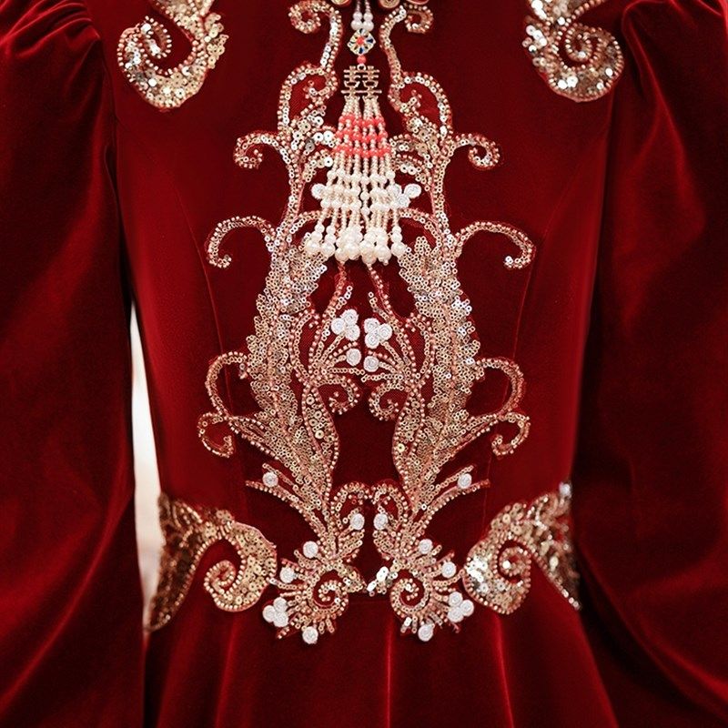 敬酒服新娘女秋冬酒红色结婚订婚长袖晚礼服裙长款冬天回门服旗袍