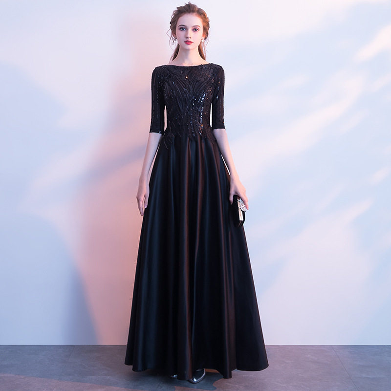 黑色晚礼服女2025秋冬新款名媛气质长款连衣裙宴会主持人演出礼服