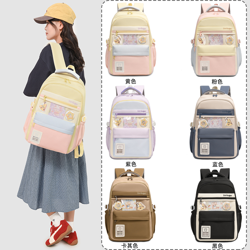 高颜值书包韩版ins原宿风小学生三到六年级双肩包撞色甜美双肩包