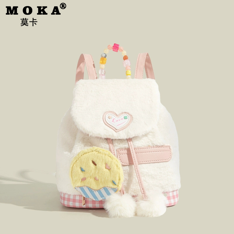 可爱甜美少女毛绒双肩包2025新款秋冬百搭学生通勤书包送女孩礼物