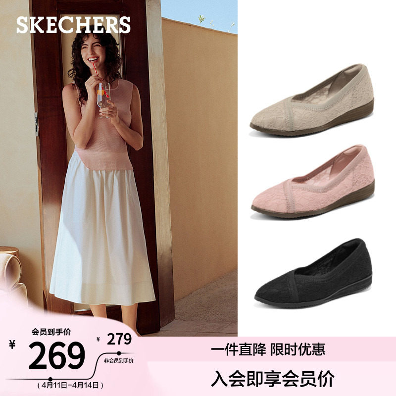 斯凯奇蕾丝坡跟浅口单鞋女鞋2026夏季新款优雅舒适透气休闲平底鞋
