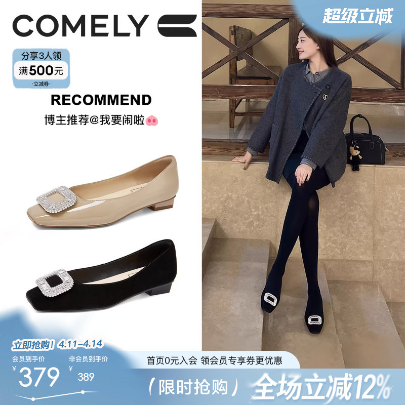 MILLIE'S/妙丽方头平底一字扣芭蕾风通勤时尚玛丽珍浅口单鞋春秋