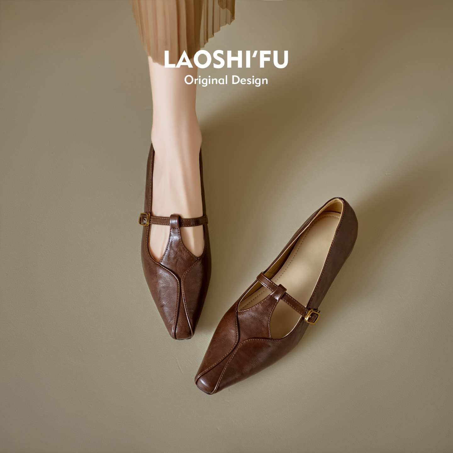 星期六法式玛丽珍鞋女2025尖头一字扣平底单鞋软底浅口通勤工作鞋