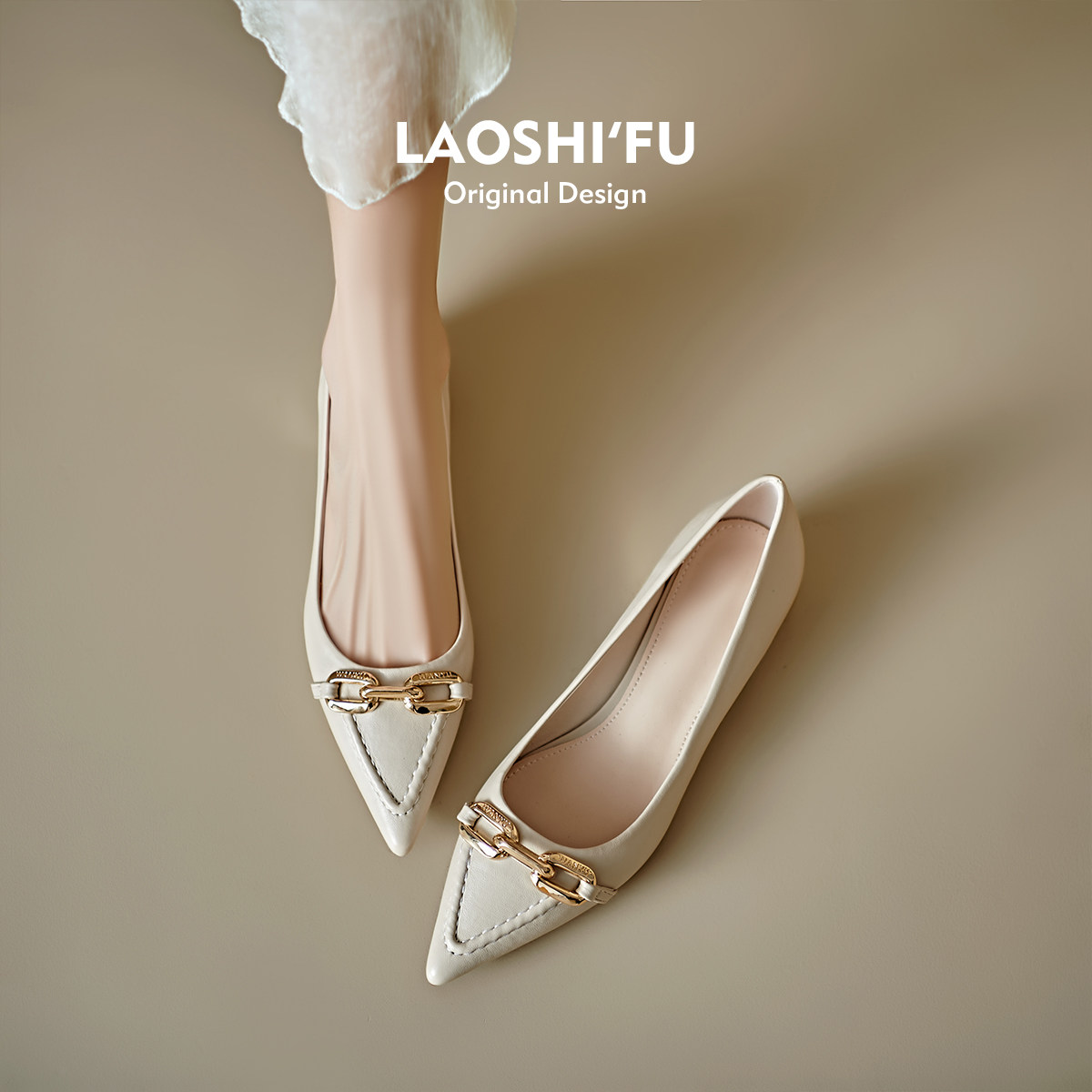 羊皮版!法式气质尖头平底单鞋女2025春新款不累脚低跟通勤工作鞋