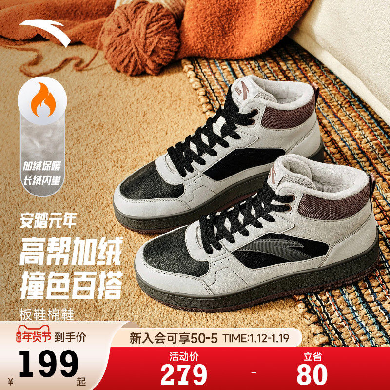 安踏元年板鞋加绒大棉鞋女鞋2026新款春季高帮休闲运动鞋雪地靴女