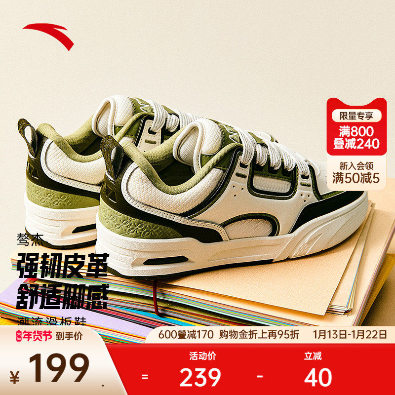 安踏骜杰丨撞色复古板鞋女鞋百搭休闲运动鞋王一博同款122518040