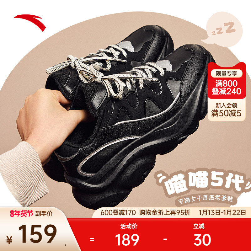 安踏喵喵鞋5丨老爹鞋女鞋潮流轻便厚底增高黑色休闲鞋百搭运动鞋