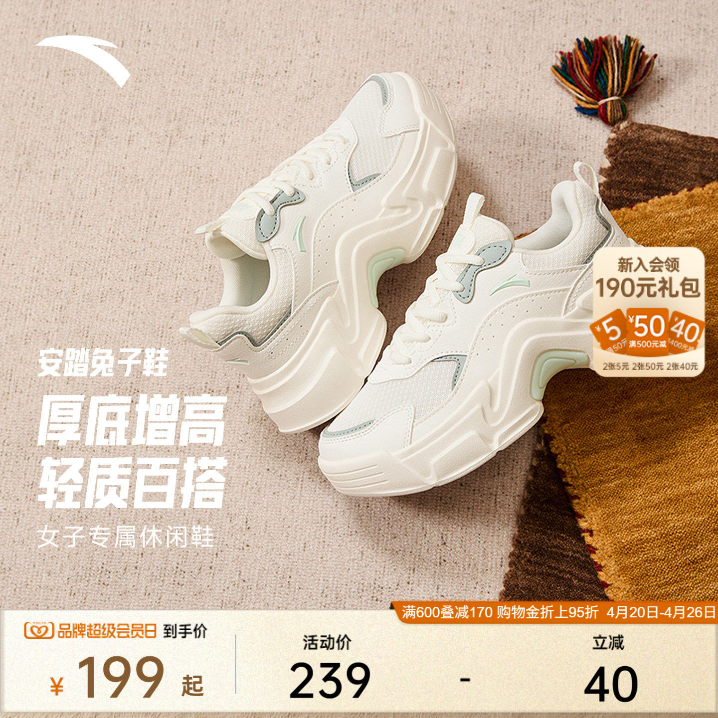 安踏兔子鞋丨软底休闲鞋女厚底增高运动鞋夏季不累脚舒适白色女鞋
