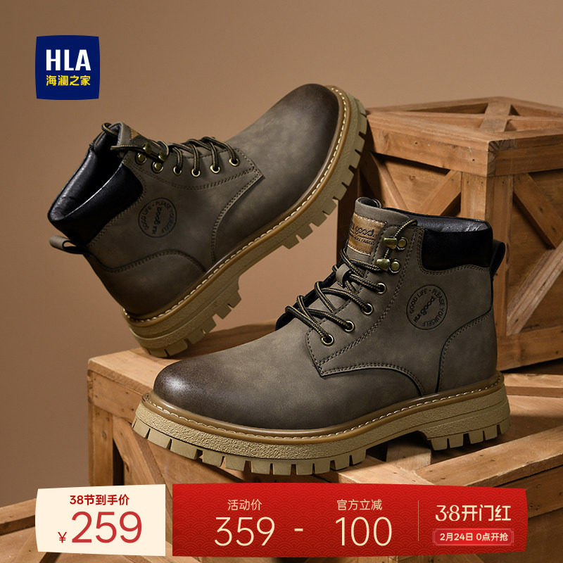 HLA/海澜之家男鞋高帮冬季潮流皮靴户外马丁靴英伦风加绒工装男靴