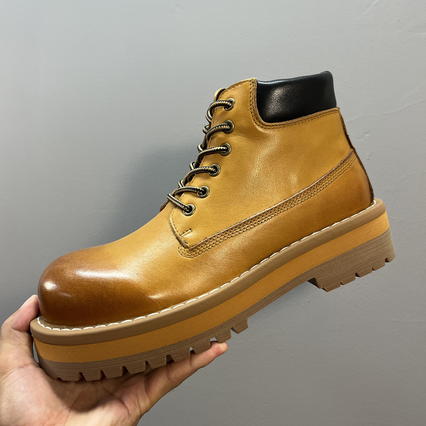 牛皮大黄靴7.5cm隐形内增高马丁靴男女款真皮工装靴踢不烂高帮鞋