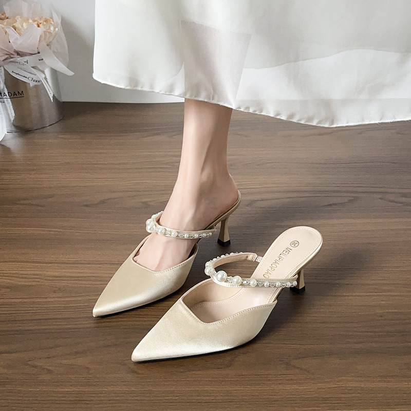 包头拖女2005夏季新款性感尖头细高跟拖鞋女仙女风外穿半拖凉鞋