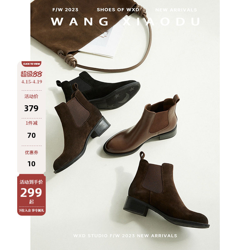 【王小毒】十年·缘分●4cm真皮切尔西短靴女粗跟加绒秀气瘦瘦靴