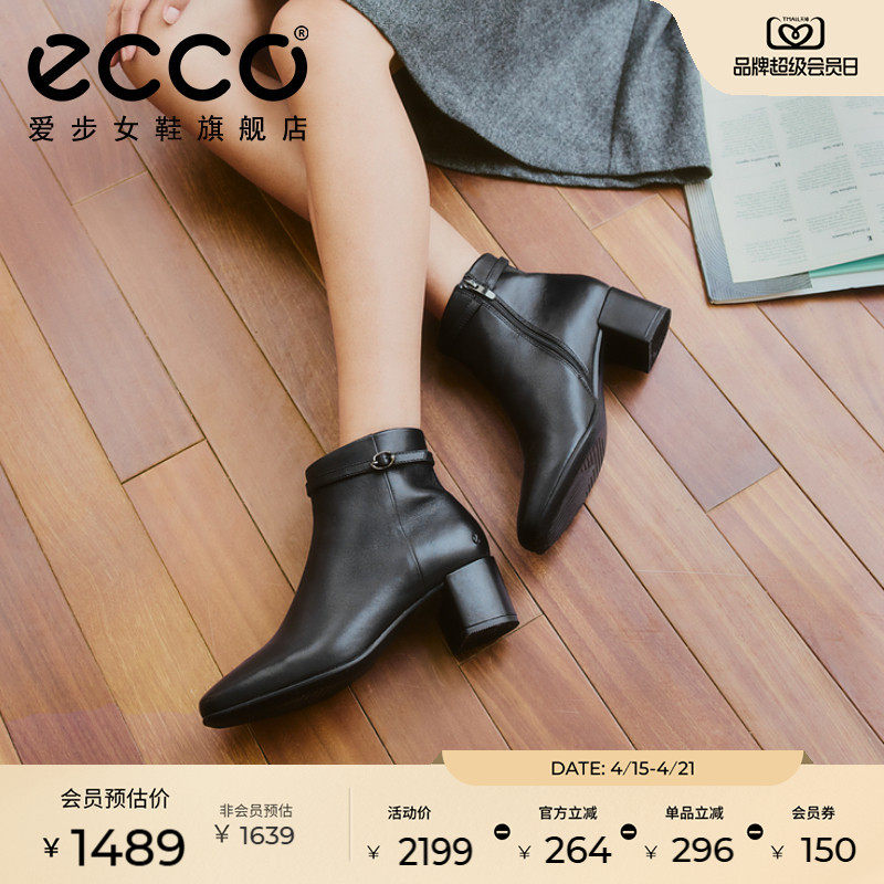 ECCO爱步靴子女 秋冬新款粗跟增高短靴切尔西靴 型塑290983
