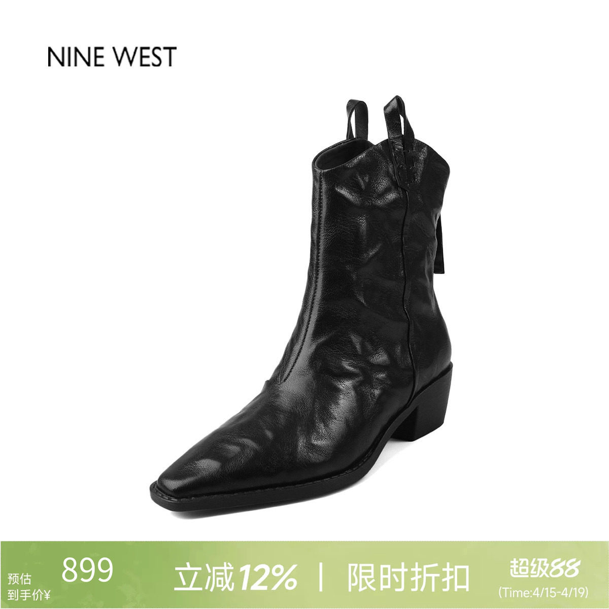 奥莱专供Nine West/玖熙法式粗跟中筒靴切尔西女靴高跟短靴靴子冬