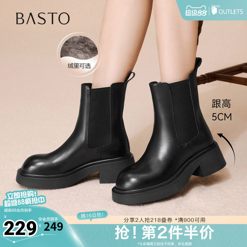 百思图秋冬季新款商场同款切尔西靴时尚潮流粗跟女短靴W3831DD5