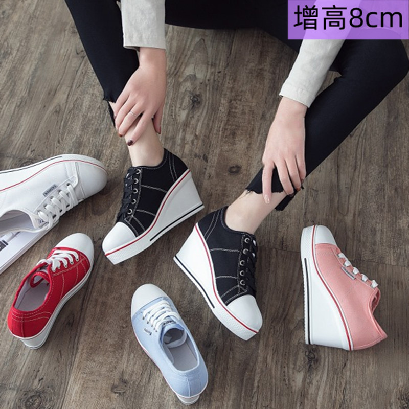 韩版百搭软底透气增高8cm原宿风板ins夏秋坡跟新款女学生帆布鞋子