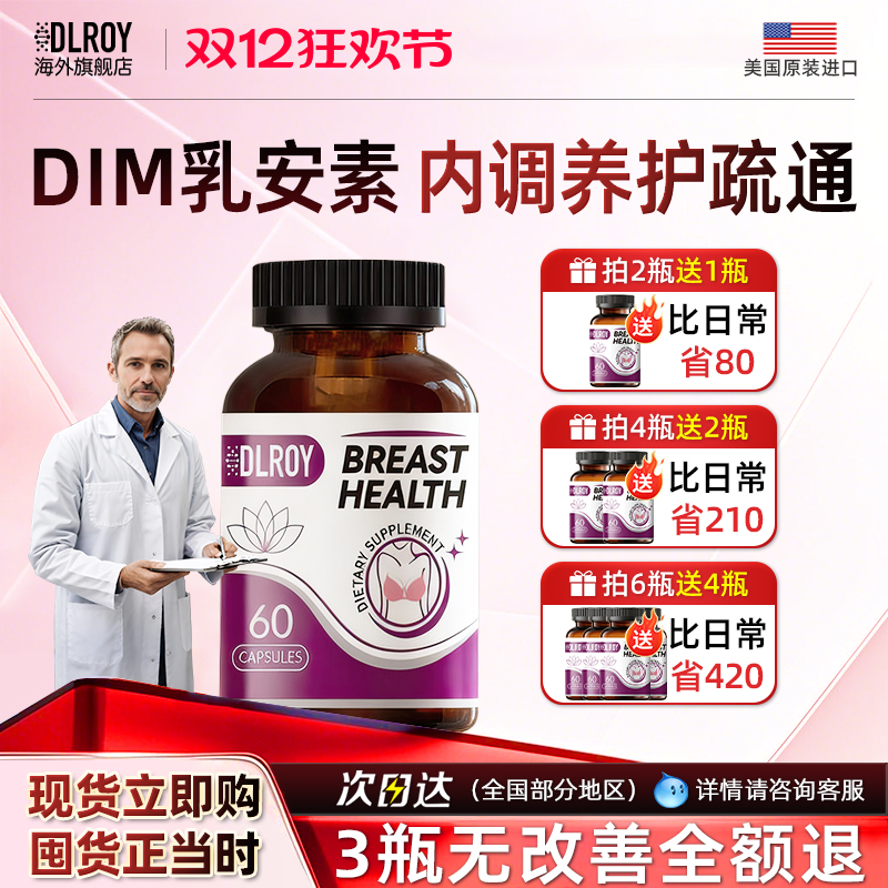 Dlroy乳安素胶囊美国进口呵护女性乳房健康DIM软化疏堵通缓解硬块