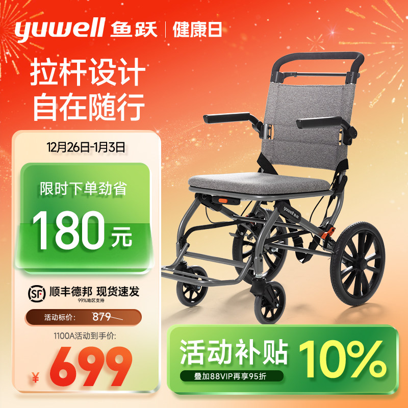 鱼跃轮椅车折叠轻便老人专用轻型瘫痪便携旅游代步骨折手动车小轮