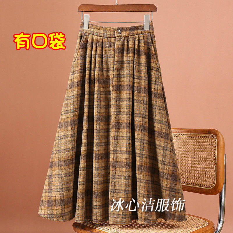 冬季超好看冬款加厚复古格子毛呢半身裙女秋冬2025半裙长裙子冬裙