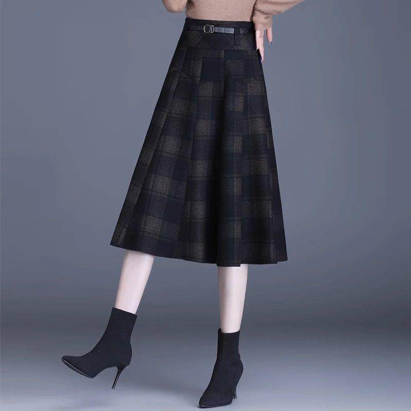 D209 春秋冬款高级感复古气质毛呢格子高腰过膝百搭显瘦半身裙