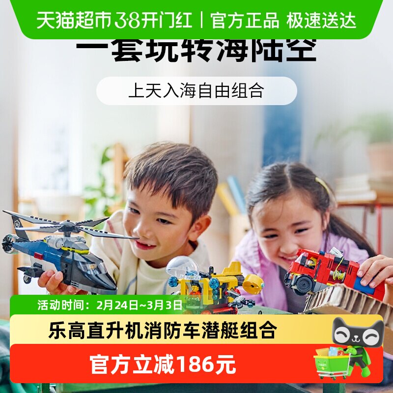 乐高直升机消防车潜艇组合套装60462儿童积木玩具【6仓正品行货】