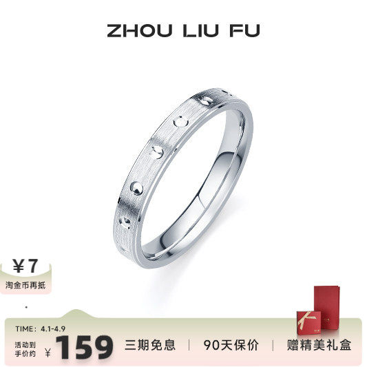 周六福经典款戒指S925纯银男女满天星简约素圈情侣戒纪念生日礼物