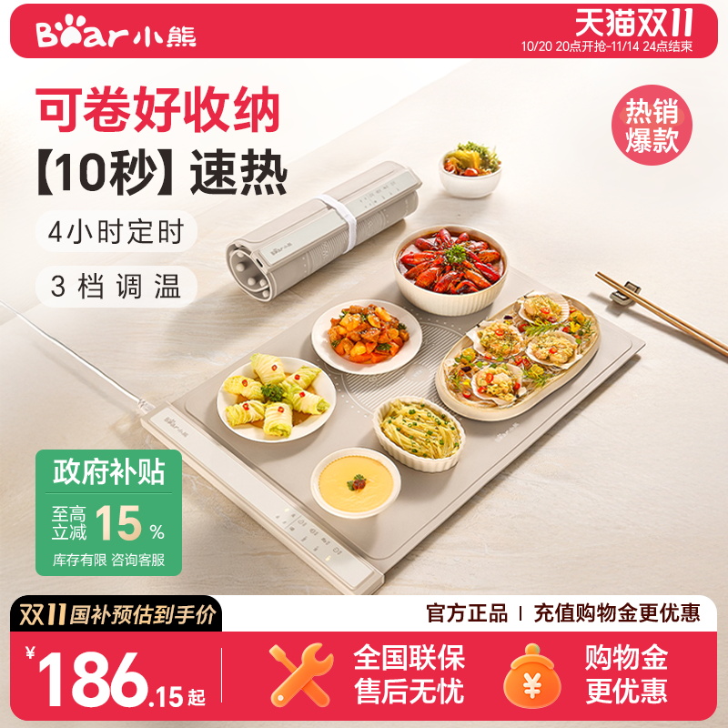 小熊暖菜板加热保温板家用自动恒温热饭神器折叠卷升温快速热暖菜