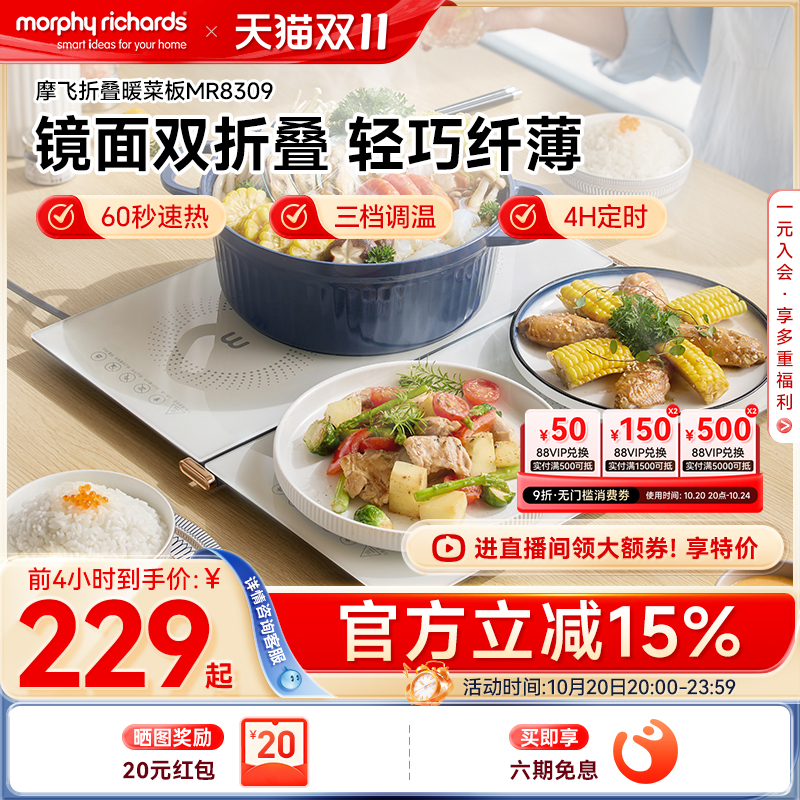 摩飞折叠暖菜板饭菜保温板家用暖菜垫多功能方形热菜板MR8300