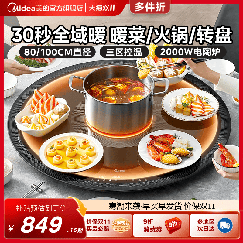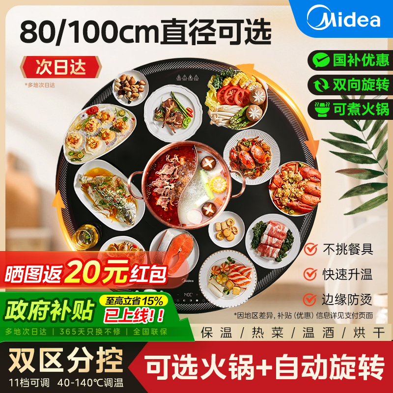 美的暖菜板饭菜保温板热菜板家用多功能长形转盘自动旋转加热餐桌