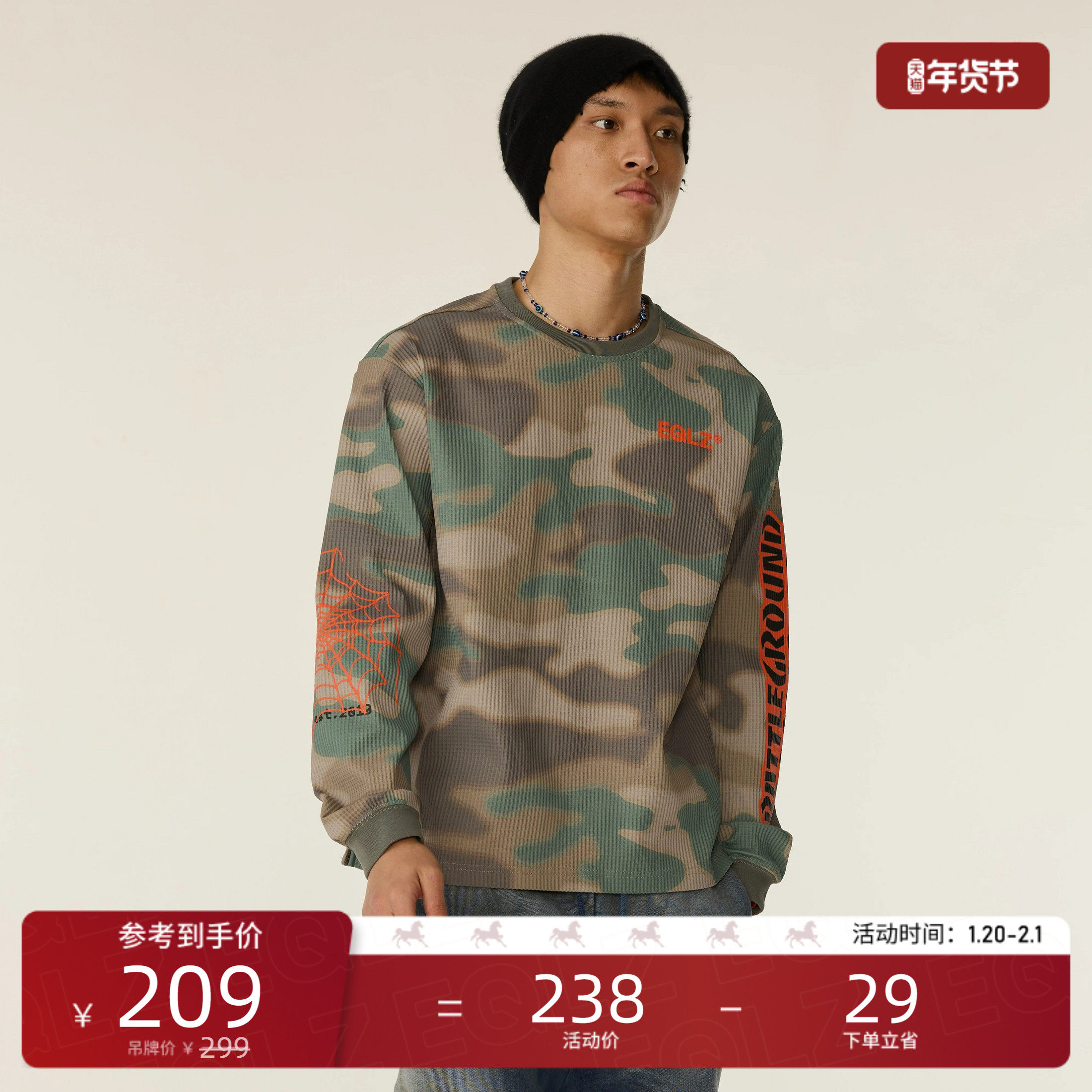EQLZ义阔草场格斗传说华夫格速干迷彩长袖T恤衫美式百搭篮球运动
