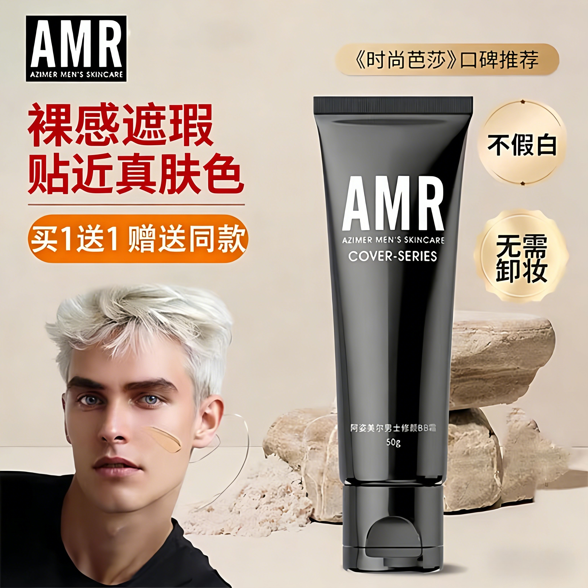 amr阿姿美尔男生专用素颜霜男士化妆品BB霜自然色粉底液遮瑕痘印