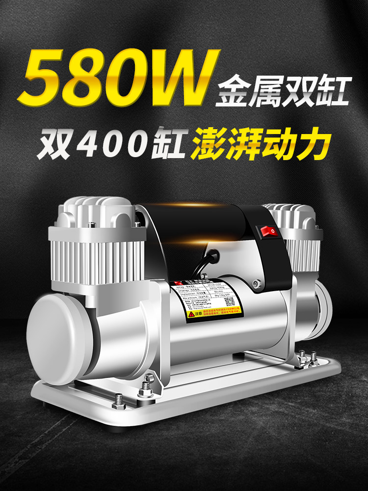 车载充气泵12V双缸高压大功率打气泵汽车农用货车轮胎SUV越野车用