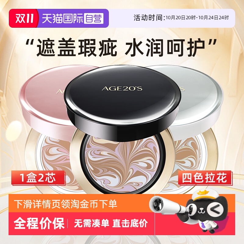 爱敬气垫遮瑕持久不脱妆age20s新款四色拉花官方正品黑金bb霜粉底