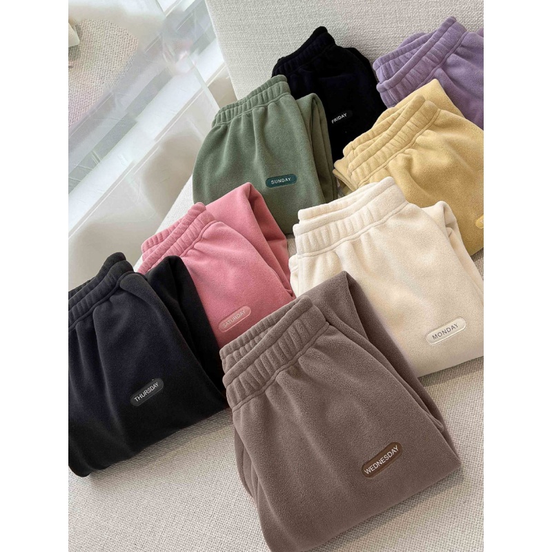 奥特莱斯~撤柜大牌双面摇粒绒居家暖暖裤女可外穿束脚宽松休闲裤