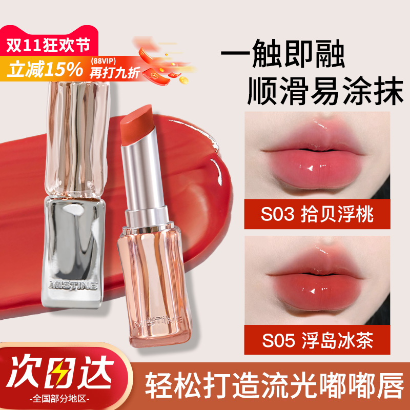 mistine蜜丝婷奶咖水光口红女大牌裸色系不掉色不沾杯镜面唇釉正