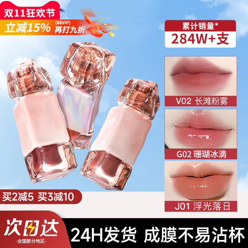 mistine唇釉蜜丝婷口红奶咖唇冻唇蜜不易沾杯镜面水光j01大牌学生