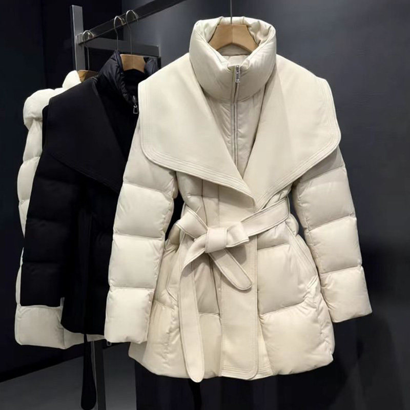 正品90白鸭绒羊毛拼接羽绒服女2025收腰高端大牌洋气保暖外套