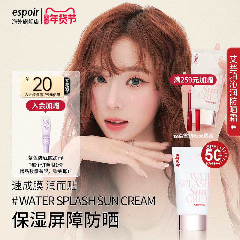 eSpoir/艾丝珀沁润防晒霜女面部修色提亮清爽隔离防水军训SPF50+