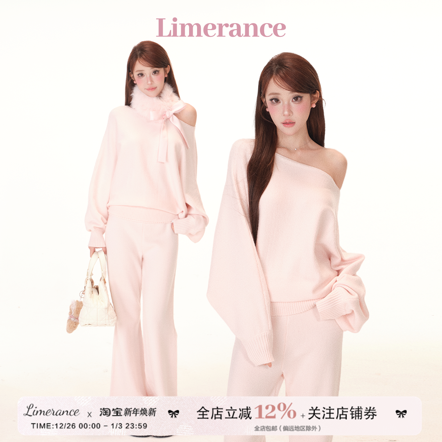 Maven Lin极简妙义 一字领羊毛收腰毛衣女宽松阔腿休闲裤通勤套装