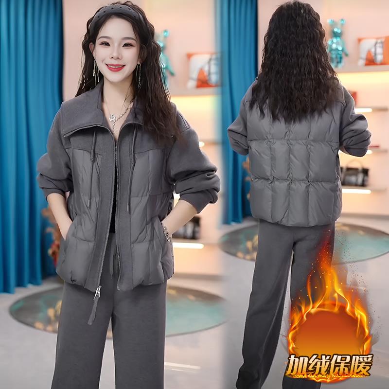 欧洲站时尚套装女2025年冬季新款加绒加厚外套休闲裤洋气两件套潮